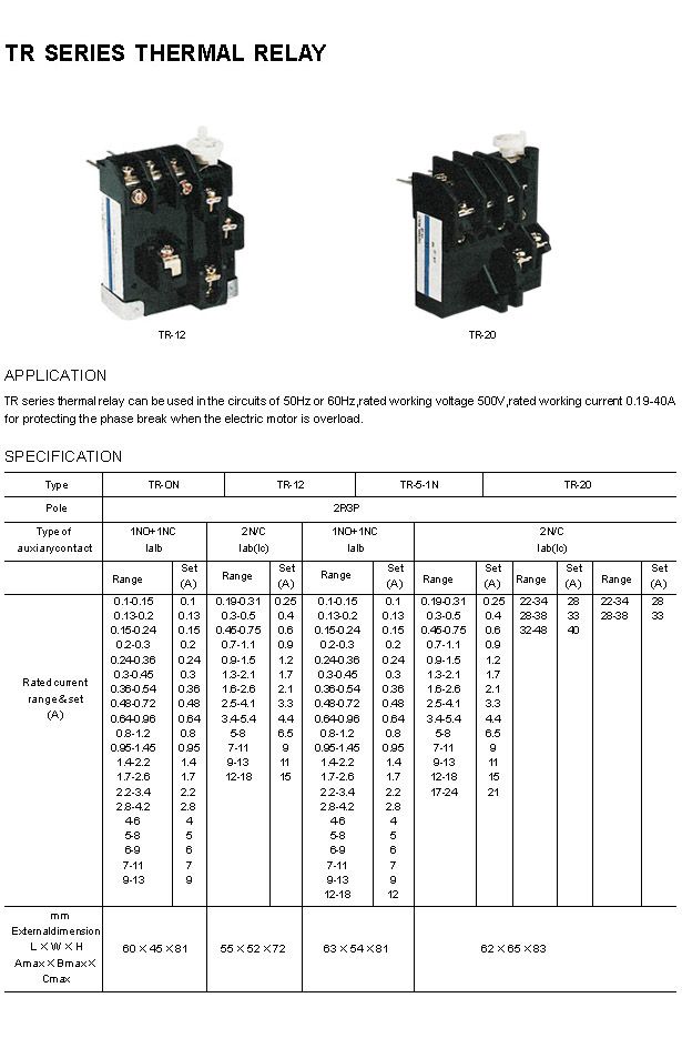 TR Series Thermal Relay