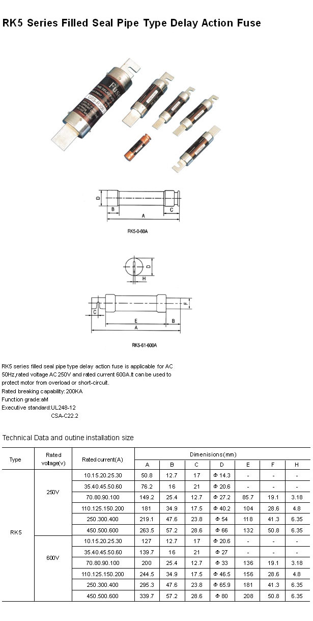 - RK5 Series Seal Pipe Type Delay Action Fuse
